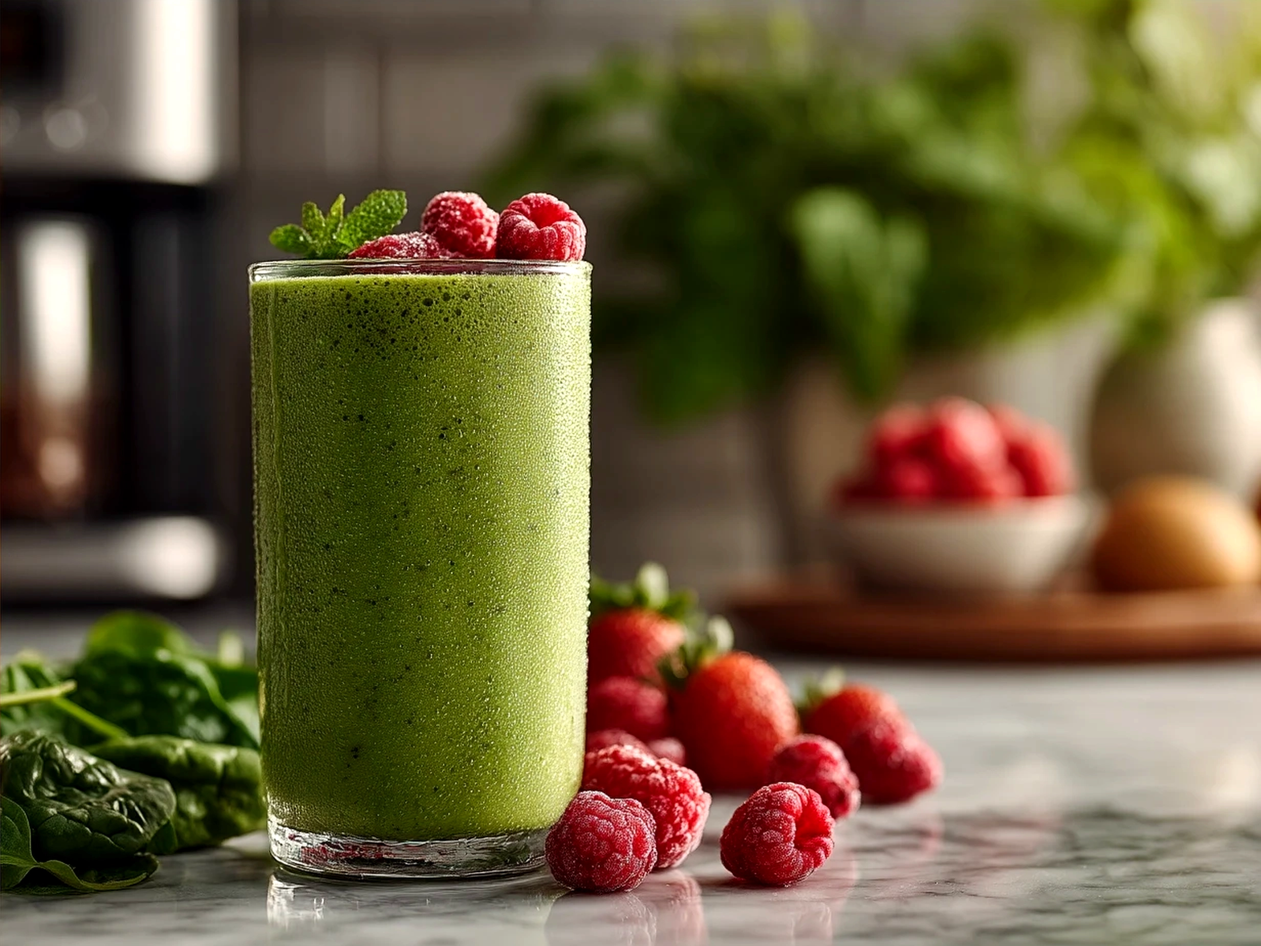 Not at all. The mixed berries and banana mellow out the spinach smoothie benefits, making it super approachable even if you’re new to greens in smoothies.