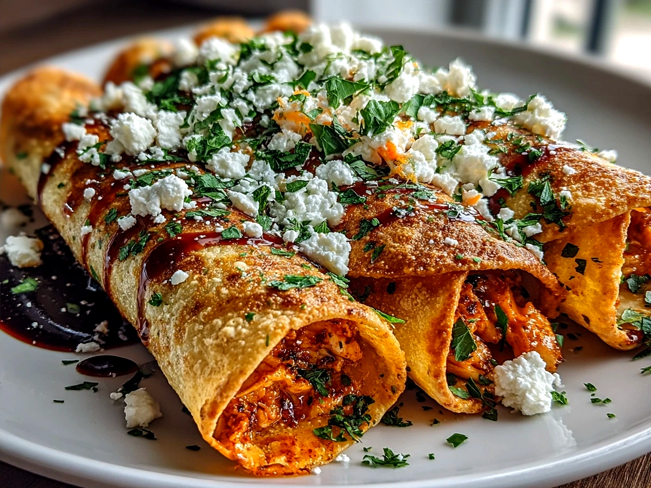 Crispy, spicy Buffalo Chicken Taquitos packed with shredded chicken and tangy buffalo sauce, perfect as a flavorful appetizer or snack.