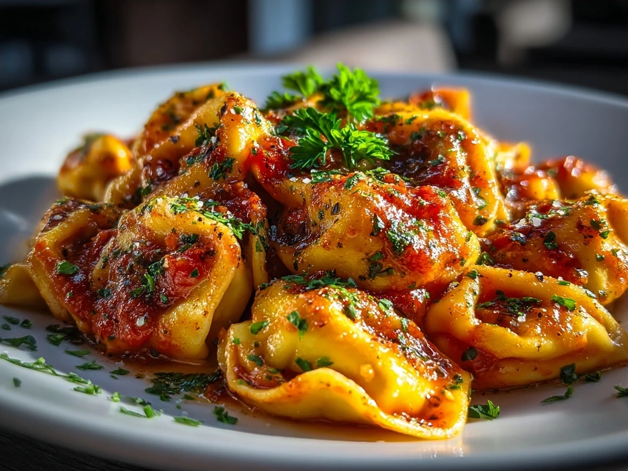 - Fold the cooked tortellini into the sauce, gently coating each piece.
