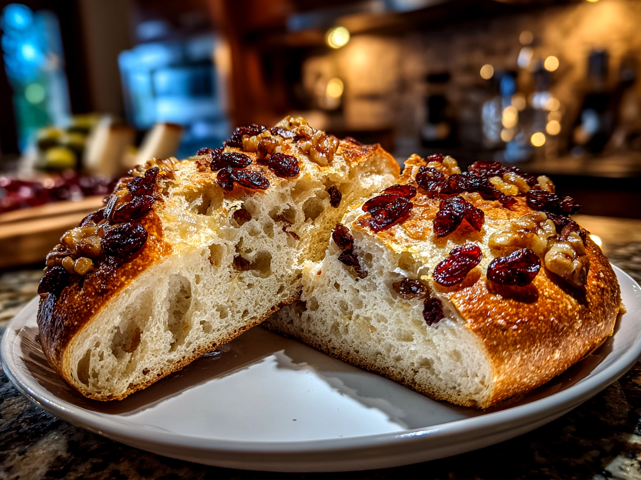 This Cranberry Raisin Walnut Cinnamon Artisan Bread combines tart cranberries, sweet raisins, crunchy walnuts, and warm cinnamon for a flavorful, rustic loaf perfect for breakfast or snacks.