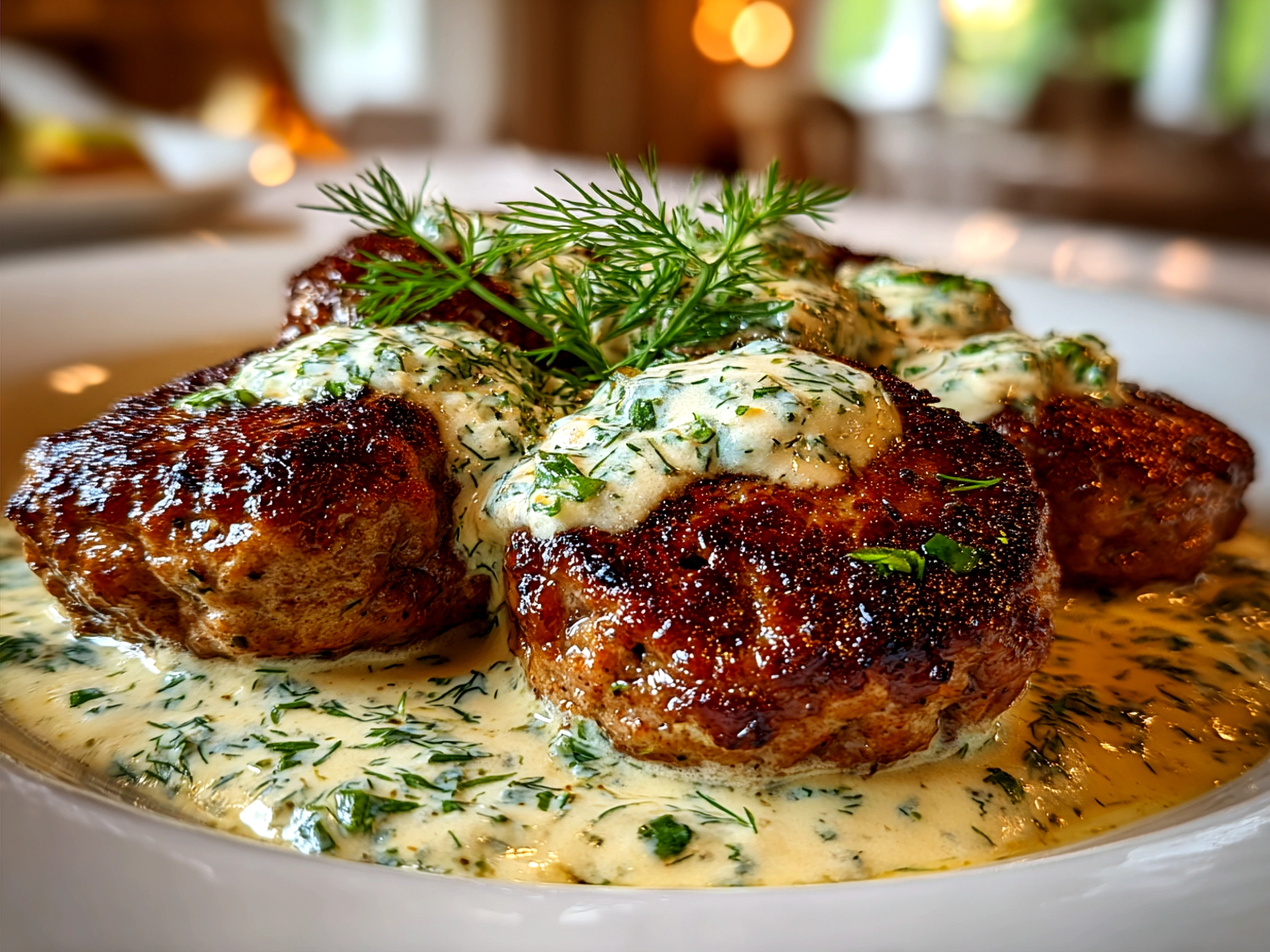 Juicy hamburger steaks simmered in a rich and creamy dill sauce, perfect for a comforting and flavorful dinner that’s quick to prepare.