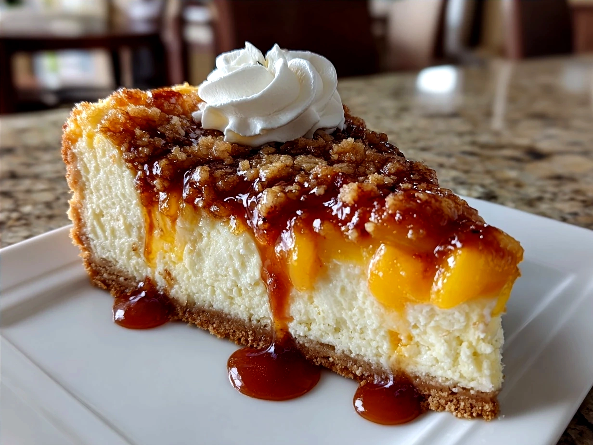 This Peach Cobbler Cheesecake combines a rich, creamy cheesecake with the sweet, fruity flavors of peach cobbler for a decadent dessert that’s perfect for any occasion.