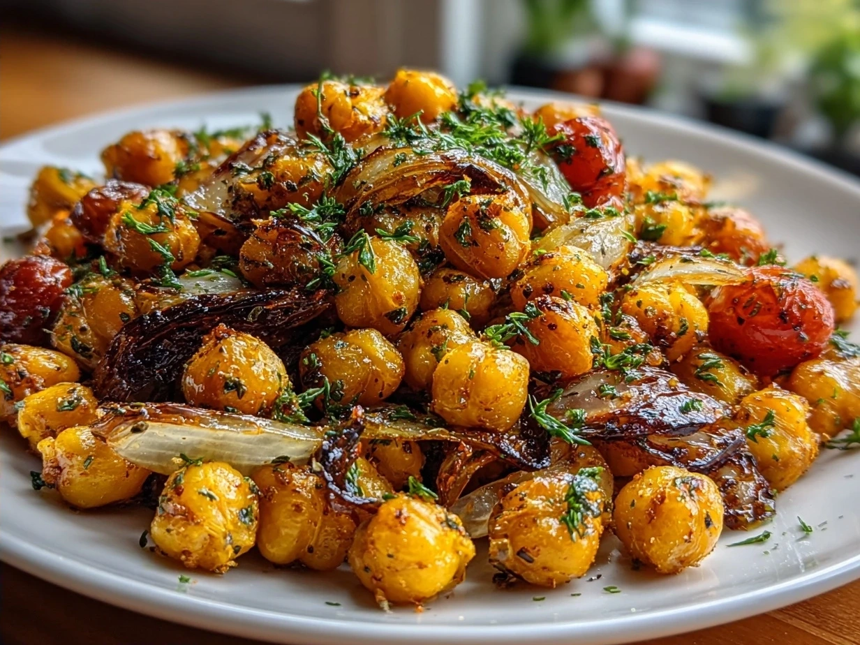 A crunchy and flavorful roasted chickpea and corn mix, perfect for a healthy snack or a protein-packed salad topper.