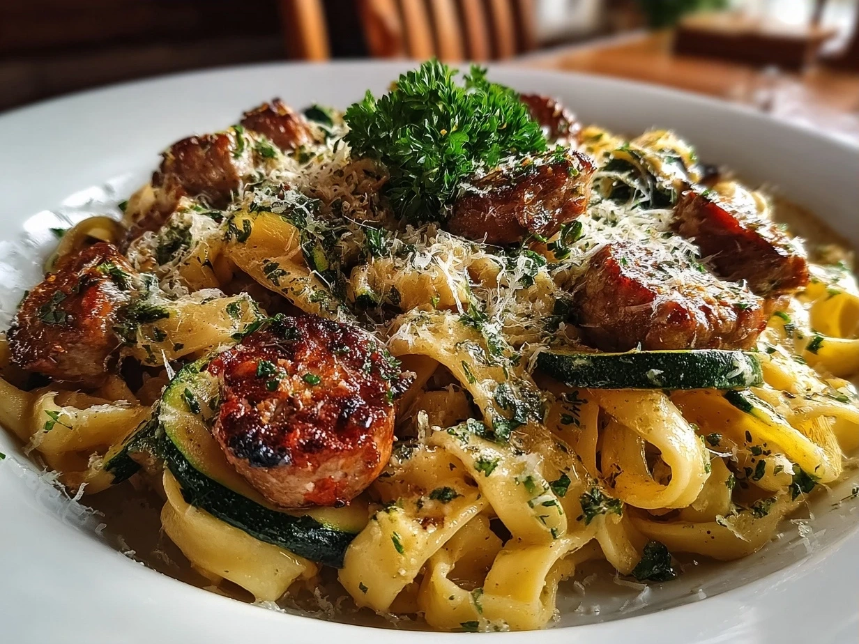 What makes this Sausage and Courgette Pasta such a winner in my kitchen is how effortlessly it comes together while packing incredible flavor. The courgette brings a light summer vibe, balancing the rich, savory Italian sausage pasta base. It’s perfect for those moments when you want a creamy sausage pasta but still crave something with a touch of green, fresh veggies sneaking in. Plus, it’s flexible—I’ve even swapped out the courgette for other summer vegetables when they’re in season, turning this into the ultimate summer vegetable pasta.
